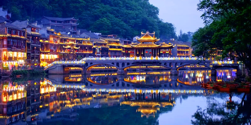 Wir laden Sie ein, mit uns eine entspannte Busfahrt in die malerische “Phoenix-Stadt” Fenghuang in der Provinz Hunan zu unternehmen. Bei einem gemütlichen Stadtrundgang durch die wohl schönste Altstadt Chinas besichtigen Sie die Pagode, ein Museum der ehrwürdigen Miao-Kultur, und den Yang-Ahnentempel. An beiden Ufern des Tuojiang-Flusses geben historische Pfahlbauten Einblick in die Geschichte und die Lebensweise der Menschen vor Beginn der chinesischen Moderne. Eine entspannte Flussfahrt auf einem der hölzernen Boote mit Blick auf die Schönheit der Altstadt rundet den Tag perfekt ab.